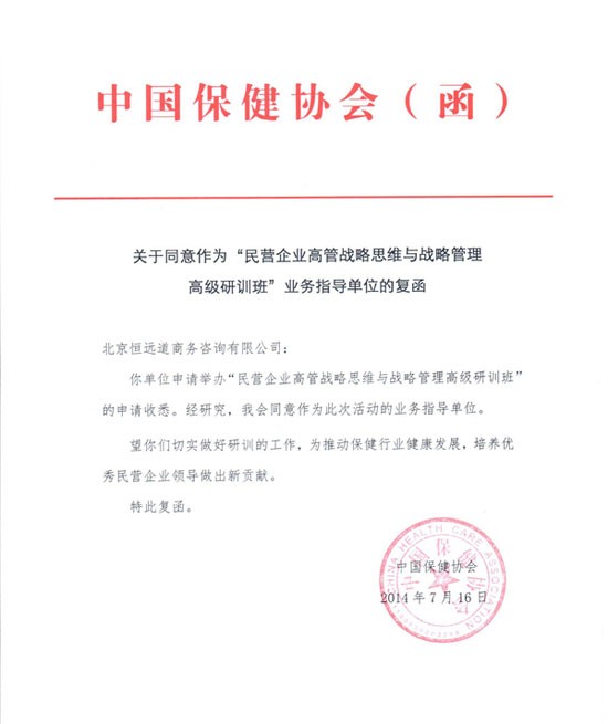 【教学管理】 一、开班时间:2014年8月15日—17日 二、研训班地点:钓鱼台国宾馆贵宾楼 三、研训班形式:研训班全程在钓鱼台国宾馆进行。统一安排学员入班与结业出班 四、结业时获取结业证书,并结业当天于钓鱼台国宾馆举行国宴规格的结业酒会 五、本研训班为收费培训模式,企业自愿报名参加,为保证培训效果,将控制参训人数,请有意参训的企业尽快报名。