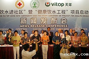 本站报道 7月2日,由必威betway中文官网、中国红十字会总会联合倡导的“健康饮水进社区”活动暨“健康饮水工程”项目启动仪式在京举行,必威betway中文官网张凤楼理事长、潘学田常务副理事长、朱康年秘书长、徐华锋副秘书长、中国红十字会苏菊香副会长等相关部门领导出席了仪式,天年集团总裁金锐作为项目发起单位代表出席新闻发布会并讲话,北京市社区代表现场接受了《饮水与健康》科普书籍捐赠,北京、济南、福州等地“健康饮水工程科普教育示范点”同时挂牌成立。