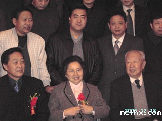 前排(左二)全国人大常委会副委员长何鲁丽(左三)原北京市政协主席白介夫亲切接见与会代表