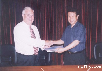 下午两点,双方在八楼会议室举行了庄重的签约仪式。公司张元彬董事长、李汉庚董事、陈乔董事同Wayne Markinnon先生及有关代表就项目合作有关条款进行了详细的商谈,达成了协议,张元彬董事长、Wayne Markinnon先生分别在合约上签字并交换了文书。合约商定,加拿大Justmark Co.公司负责提供其拳头产品:帝比爱金牌海豹油(产品批文:国食健字J20040029),并授权广东紫薇星实业有限公司作为其产品在中国除台湾地区范围内的经销商。