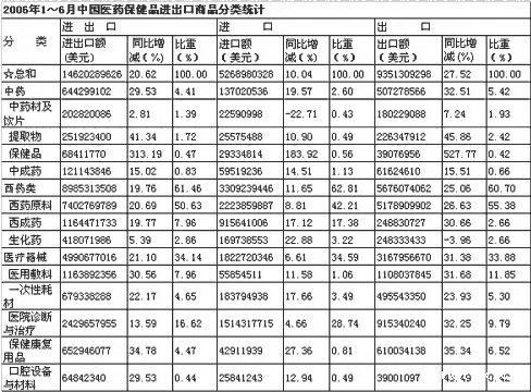 06年医药保健品进出口商品统计