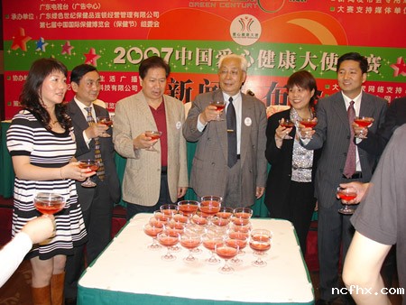 与会领导及嘉宾举杯共同祝愿“绿色世纪杯”爱心健康大使大赛取得圆满成功