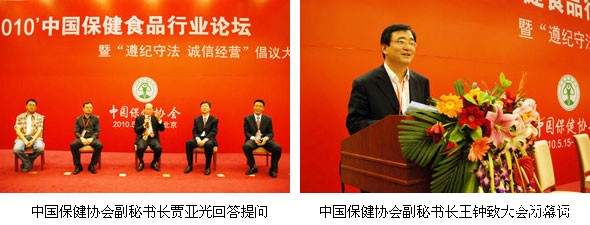 2010年5月15-16日,必威betway中文官网为贯彻《食品安全法》,落实《2010年保健食品安全整顿工作实施方案》,在北京召开了“2010中国保健食品行业论坛暨“遵纪守法、诚信经营”倡议大会”。必威betway中文官网组织会员单位并向全行业发出“遵纪守法、诚信经营”的倡议。倡议从确保产品生产质量、服务质量、向消费者者提供明确、可靠、全面的消息,客观宣传、合法经营到自觉维护行业声誉,维护消费者权益,接受社会及消费者监督等方面呼吁行业企业遵纪守法,诚信经营,用实际行动完善保健行业的诚信形象。商务部、工业和信息化部、卫生部、国家食品药品监督管理局相关领导出席大会,保健行业的企业代表、新闻媒体等300余人参加了会议。