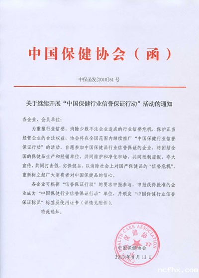 为重塑行业信誉,消除少数不法企业造成的行业信誉危机,保护正当经营企业的合法权益,协会将在全国范围内继续推广“中国保健行业信誉保证行动”的活动,自愿参加中国保健品行业信誉保证的企业,将团结全国的保健品生产和经销单位,共同维护和净化市场,共同抵制虚假、夸大宣传,共同打击假、劣保健品,以消除社会上对国产保健品的“信誉危机”,重新树立起广大消费者对中国保健品的信心。