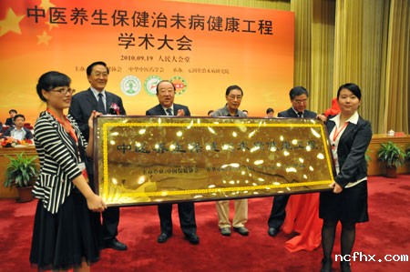 与会领导为首届中医养生保健治未病健康工程学术大会揭牌