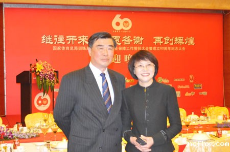 11月29日,国家体育总局训练局备战伦敦奥运会保障工作誓师大会暨成立60周年纪念大会新闻发布会,在北京以腾讯网络视频新闻直播形式举行。  国家体育总局训练局局长阎世铎(左)与珍奥集团总裁潘晓非合影