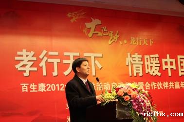百善孝为先,纵观古今中外、各行各业,凡是取得成功的人都有一颗孝道的心。2012年是百生康开展的“健康、爱心、公益”活动的第3年,百生康把为顾客行孝道作为2012年“健康、爱心、公益”活动的主旋律。  李宝库理事长讲话
