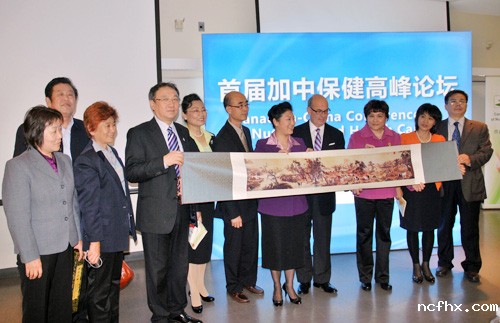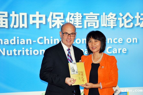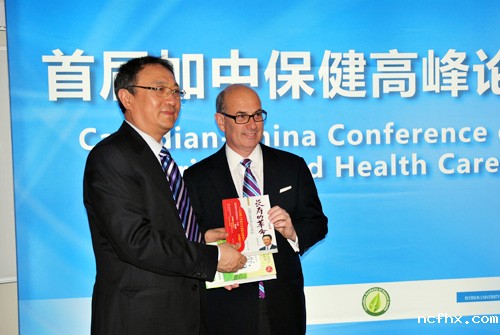 首届中加保健高峰论坛主持人国际研究中心主任林小华教授 为加拿大联邦前卫生部副长David Dingwall先生赠书