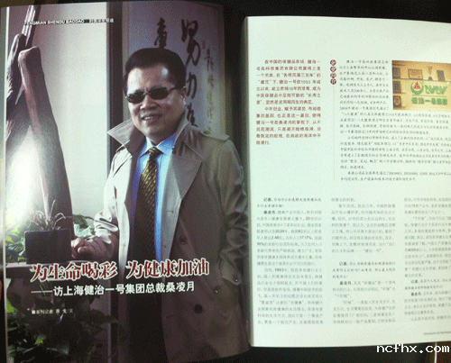 由上海市企业家协会主办的《上海企业家》,辐射文化、财富、时尚、生活等各个维度,传递高端品位、人文关怀等价值观,是一本真正立足商界、面向精英、服务上海的杂志。 2012年12月10日出版的《上海企业家》,对健治一号集团董事长桑凌月作了独家专访,并将桑凌月董事长推选为《上海企业家》2012年第六期(总第133期)的封面人物。 在此期中,《上海企业家》以《为生命喝彩 为健康加油》为题,从前瞻理念、开放思维、果敢行动、踏实作风等方面,描写了桑凌月董事长在健治一号发展过程中的行业启点、经营模式、管理理念、人生感悟等内容,既全方位诠释了健治一号创建20年之所以能一直处于行业龙头地位的原因,又释放了企业管理者的个人魅力,为广大读者展示了一个成功的企业,一个智慧的管理者。 《上海企业家》杂志专注于企业人物的深度挖掘,分享财富精英的创富智慧,其资讯全面、准确、报道权威。此次桑凌月董事长能当选为杂志封面人物,不仅是对个人知名度和影响力的认可,更是对健治一号良好企业形象的肯定。