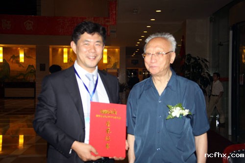 新闻出版总署新闻报刊司副司长朱伟峰为郑宁董事长颁发奖杯和证书