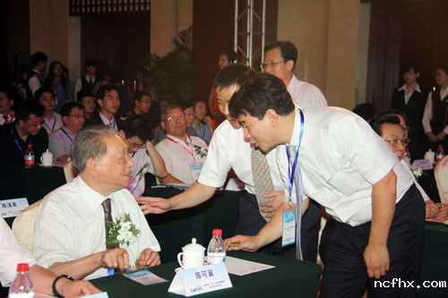 健尔康董事长郑宁、总经理曹强向中国科学院院士,中国中医科学院西苑医院内科教授陈可冀老先生汇报工作,得到陈老肯定与认可
