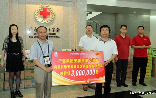 4月20日上午8点02分,四川雅安芦山县发生7.0级地震,广药王老吉1.828亿爱心基金紧急响应,立即联合广东省红十字会联合发起捐赠仪式,第一时间组织首批300万物款运往灾区。除此之外,广药集团召开了紧急会议,还迅速组织120人的王老吉爱心救援队,带领第一批救灾药品于20日下午奔赴雅安,将根据政府要求配合协助求援。 一方有难,八方支援,救助雅安,刻不容缓,抢险和救助生命是目前主要的事情。广药王老吉1.828亿爱心基金在捐助物款的同时也呼吁广大有使命感、有责任感的企业和爱心人士一起关注和支持雅安,为灾区进行祝福,帮助灾区人民早日战胜天灾,重建美丽家园。 据悉,广药王老吉1.828亿爱心基金对公益及救灾建立起应急响应流程和措施,此次捐助雅安地震是继4月8日捐赠价值800万元物质支持抗禽流感事件后,再次第一时间响应应急救助机制。 据该企业相关负责人表示,抢灾救险,公益捐助是广药集团践行企业社会责任的重要举措,也是回报社会的感恩回馈之心。广药集团后续还会继续关注救灾工作,将联合旗下企业白云山和黄、白云山奇星、白云山中一和白云山光华等为灾区持续提供紧需物资,帮助灾区人民重拾信心,度过难关。