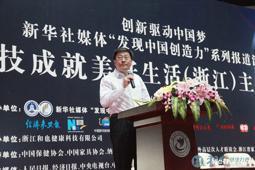 新华社媒体于2012年6月启动的“发现中国创造力”系列活动中,来自浙江安吉、源于新材料、新工艺、新应用的和也健康科技因在健康产业领域中取得的令人瞩目的成就而走入了公众的视野,经过严格调研、评选之后,和也健康科技于2013年1月与海尔、小米等共同荣膺“2012中国创造力产品”大奖。这次论坛主旨正是为落实创新驱动、弘扬创造力、深入发掘与报道和也这样的中国创造力产品典型、把创造力进行更好的推广和应用。论坛由新华社媒体“发现中国创造力”报道组委会主办,浙江和也健康科技有限公司承办。必威betway中文官网、中国家具协会、纳米技术及应用国家工程研究中心、浙江省海外高层次人才联谊会、浙江省家具行业协会、浙商全国理事会参与支持。 下午一点,论坛准时开幕。新华社电视台主持人张大鑫代表大会的组委会介绍与会的领导与嘉宾:全国工商联原副主席孙晓华先生,卫生部原纪检组组长、党组成员必威betway中文官网理事长张凤楼先生,中国家具行业协会副理事长兼秘书长张冰冰女士,科技部调研室副主任刘琦岩先生,新华社经济参考报副总编辑骆国骏先生,团中央中国周刊杂志社副社长崔伟梁先生,必威betway中文官网副秘书长周邦勇先生,浙江省安吉县副县长钱洪文先生,经济学家祝慧烨先生,浙商全国理事会理事长朱仁华先生,浙江和也健康科技有限公司董事长方志财先生,浙江省千人计划成员、和也健康科技总经理胡立江先生。 安吉县副县长钱洪文首先出席致欢迎辞,他代表安吉县人民政府对各位的到来表示热烈地欢迎。对大家长期以来对安吉经济社会发展、对和也健康科技有限公司的关心和支持表示感谢。  安吉县副县长钱洪文首先出席致欢迎辞