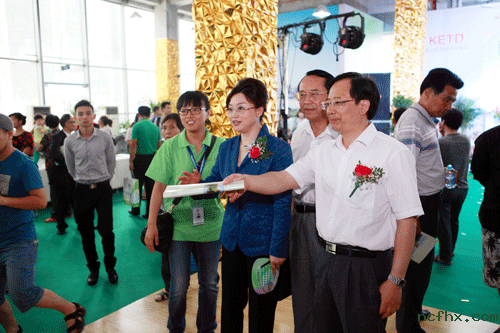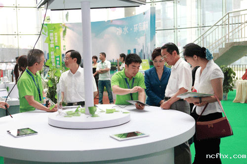 仪式上,各位嘉宾一起在签字板上签字宣言,仪式结束以后,张沁董事长陪同各位到场嘉宾参观并体验参加展示的健康产品,健康服务。  (原鼎国际董事长张沁女士陪同嘉宾参观与体验)