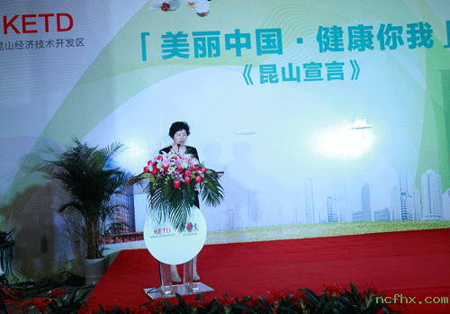 (活动主题) 6月29日,“美丽中国•健康你我”《昆山宣言》公益活动如期在昆山城东原鼎国际广场举行,此次活动由昆山经济技术开发区与原鼎昆山国际健康园联合举办。出席此次活动的嘉宾有香港原鼎国际健康园有限公司董事长张沁女士,必威betway中文官网副理事长牛忠俊先生,工业和信息化部中国信息化推进联盟秘书长刘献军女士,香港可持续发展教育学院职教委员会主席、太平绅士李锷教授以及来自香港、北京、上海等地嘉宾和昆山经济技术开发区的领导们。  (香港原鼎国际健康园有限公司董事长 张沁女士)