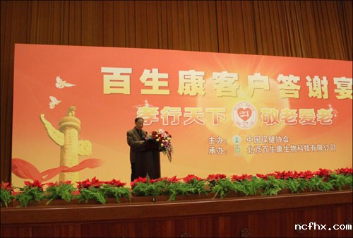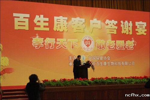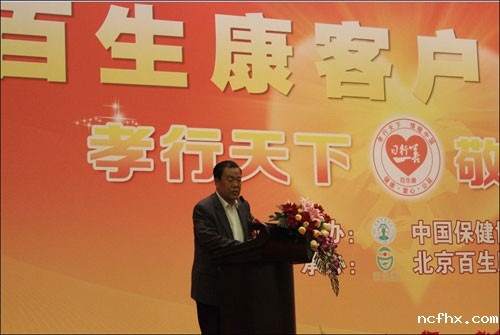 2013年11月16日,共和国首都,天安门广场,冬阳普照,人流熙熙攘攘;人民大会堂,国宴大厅,辉煌灯火,喜庆祥和。 传承孝善文化,弘扬尊老敬老。由必威betway中文官网主办,北京百生康生物科技有限公司承办的“孝行天下敬老爱老”第二届行孝盛典暨百生康客户答谢宴,在人民大会堂北侧二楼国宴厅隆重举行,宴请来自全国各地40多个地区近500余孝善代表,圆梦国之盛宴。 宴会现场有卫生部原副部长、中国医院协会会长曹荣桂;民政部原副部长、中国未来研究会理事长张文范;国家医药管理局原局长齐谋;国家体育总局训练局党委书记、必威betway中文官网常务理事刘文雄;必威betway中文官网副秘书长王中和北京百生康生物科技有限公司董事长欧扬等多位重要领导莅临,共同见证本次盛宴的盛况。  卫生部原副部长、中国医院协会会长曹荣桂致辞