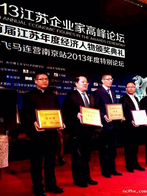 “2013江苏企业家高峰论坛暨首届江苏年度经济人物颁奖典礼”于12月29日在南京盛大举行。健治一号集团董事长、总裁桑凌月先生榜上有名,当选为“2013年江苏十大行业领军人物”,江苏省原副省长吴瑞林,原省政协副主席陆军等为这些获得殊荣的企业家颁奖。