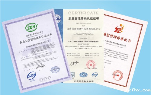 2014年伊始,天津铸源健康科技集团有限公司(以下简称“铸源集团”)好事成双,迎来两大喜讯,1月10日铸源集团通过ISO22000:2005《食品安全管理体系 食品链中各类组织的要求》及各专项技术要求CNCA/CTS 0018-2008《食品安全管理体系 营养保健品生产企业要求》审核,获得食品安全管理体系认证证书;1月22日,经国家认证认可监督管理委员会认证认可技术研究所(CCAI)评审,铸源集团的诚信管理体系符合中华人民共和国工业和信息化部(MIIT)发布的《食品工业企业诚信管理体系(CMS)建立及实施通用要求》,获得由国家认监委认证认可技术研究所颁发的《诚信管理体系证书》。
