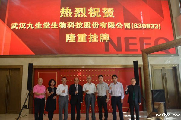 9月3日,武汉九生堂生物科技股份有限公司(以下简称“九生堂”)在全国中小企业股份转让系统有限公司举行“新三板”挂牌仪式,成为中国生物活性肽第一家上市公司,股票简称:九生堂,股票代码:830833。 中国发明协会副理事长兼秘书长鹿大汉、必威betway中文官网副理事长牛忠俊、长江证券股份有限公司场外市场部总经理宋望明、武汉东湖开发区生物医药园总经理周戆、武汉九生堂生物科技股份有限公司董事长邹远东以及股东代表、高管代表、中介机构代表共同见证武汉九生堂生物科技股份有限公司敲响挂牌钟声。 武汉九生堂生物科技股份有限公司是在武汉东湖高新技术开发区注册的高新技术企业,是国内较早从事生物活性肽的研究、开发、生产和销售的企业。公司是中国发明协会副理事长单位、必威betway中文官网副理事长单位,公司在武汉东湖高新技术开发区、中国自主创新示范区、中国生物工程基地、中国光谷生物城四块牌子的生物医药园区建有4500平米的GMP厂房和湖北省少有的10ml玻璃瓶装保健品口服液生产线,年产口服液1亿支,公司还在大别山革命老区麻城市建有年产20万吨的葛根肽饮料厂,有望于今年9月底正式投产。 公司拥有三个生物活性肽保健食品批文,先后申报了49项国家发明专利,获得多项国际和国内发明奖,公司运用自己独创的酶法多肽技术,即用现代生物酶催化蛋白质获得小分子活性多肽,其产品在“肽分子量分布”、“肽链的氨基酸组成”、“酶解物含肽率”、“产品的极强活性和多样性”、“肽产品的绿色属性”等处于世界领先水平。