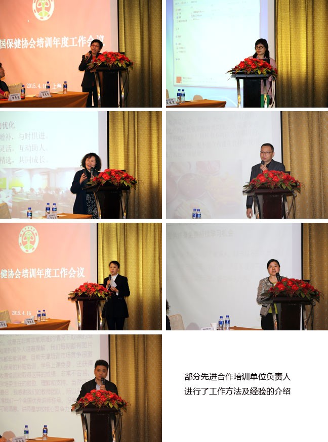 徐华锋副理事长兼秘书长为会议致辞。他首先向到场的各合作培训单位负责人表示欢迎,并感谢各合作培训单位多年来的努力,肯定了各合作培训单位通过探索和实践做出的成绩。他认为协会性质决定培训工作的内容应围绕企业开展,希望进一步将培训工作与服务会员企业结合起来。通过培训提高从业人员素质,进而引导行业发展。他建议下一步的培训工作重点应加强创新,探索如何有效利用互联网开展培训工作。 黄建生副秘书长做了2014年度协会培训工作总结。他表示协会与各合作培训单位围绕改进培训工作,增加培训项目,扩大培训规模,提高培训质量的工作目标,坚持严格遵守保健协会制定的“统一招生宣传口径,统一培训教材,统一收费标准和统一考试考核”原则,坚持“服务行业,服务企业”的培训方向和提高行业从业人员专业技能的培训方针,在招生、培训、考试等方面严把质量关,圆满完成了2014全年培训任务。在肯定获得成绩的同时,他有针对性地指出了培训工作中存在的问题,提出了培训工作2015年的工作目标和计划。  徐华锋副理事长兼秘书长为2012-2014连续三年获得先进的合作培训单位颁发铜牌